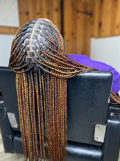 Royals are customized knotless braids matched to the density of the client's hair type. Parts are smaller with more braids.